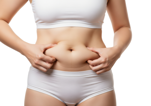 Woman Pinching Her Belly Fat, isolated on a transparent background