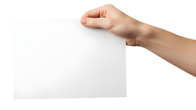 Hand holding blank paper isolated on transparent background Remove png, Clipping Path, pen tool