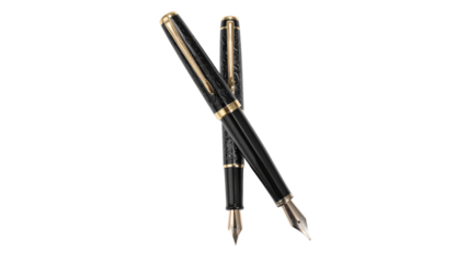 A close-up view of hands holding a silver pen, showcasing writing and signing actions with a sleek design. Isolated on transparent background.