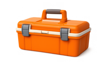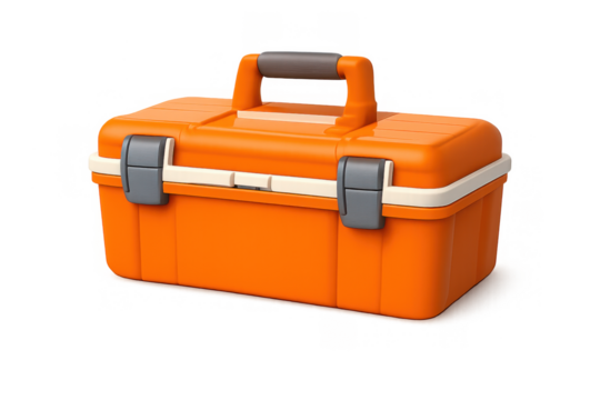 Orange plastic toolbox with handle and clasps, illustrating concepts of repair, maintenance, and diy household projects