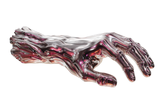 Metallic hand, sculpted, abstract, reflective