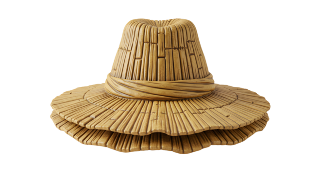 FARMING - Handwoven straw hat with wide brim isolated on white background, traditional summer sun hat perfect for outdoor activities