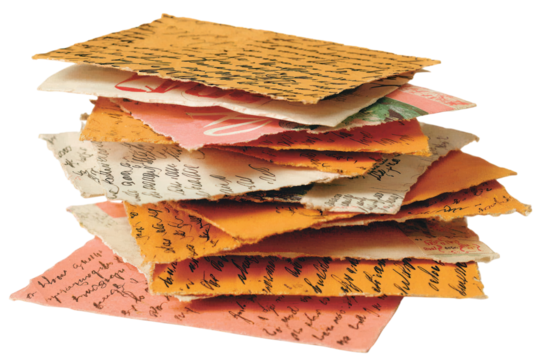 Stack of unsent love letters, nostalgic still life photography, soft golden light, handwriting details