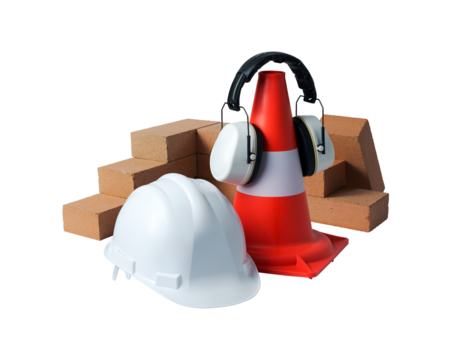 A man's hands hold a builder's helmet on a white or transparent background. Close-up of a builder's hands holding an orange helmet. Graphic design element on the theme of construction.