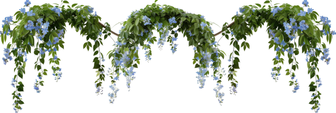 set of hanging creepers with tiny blue flowers, ideal for decorating garden arches, isolated on transparent background