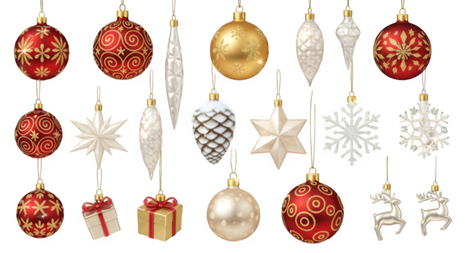 Festive christmas decorations hanging on transparent background