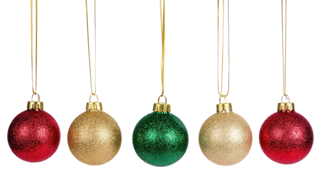 PNG Colorful glittery Christmas ornaments hanging
