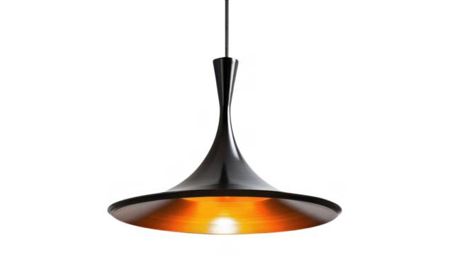 Modern cylindrical pendant light fixture illuminates against a dark background