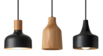 Set of minimalist hanging lamps isolated on transparent background. Front view of modern minimalist pendant hanging lamp for home interior decoration elements. Generative AI