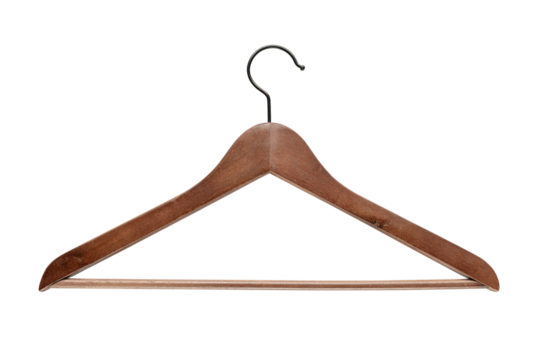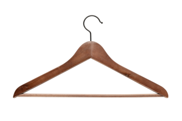 wooden clothes hanger isolated on transparent background, PNG clip art.