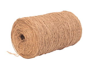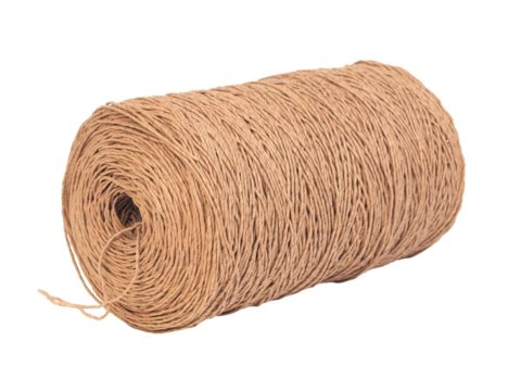 Isolated bundle of natural light rope, a looped hank is bound in the middle, lying across the frame