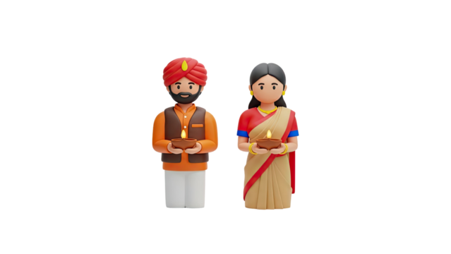 Ornate Diwali Diya Oil Lamp on Transparent Background