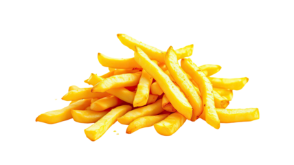 Golden, crispy fried potato sticks in a haphazard, appealing pile