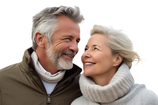 Middle-aged man celebrating his wedding anniversary with his wife Romantic, warm atmosphere, Isolated on a transparent background.