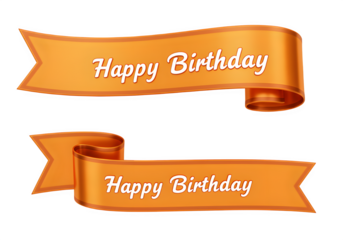 Orange ribbon with Happy Birthday text, festive and bright, isolated on white or transparent background. PNG format for birthday designs.