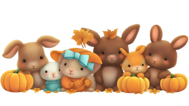Cute Bunnies With Pumpkins Illustration on Transparent Background