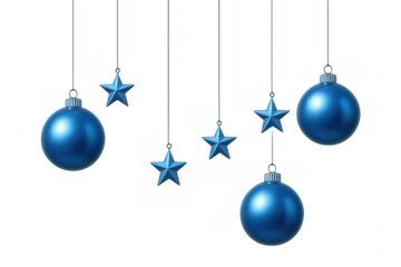 Blue christmas baubles and stars hanging decoration