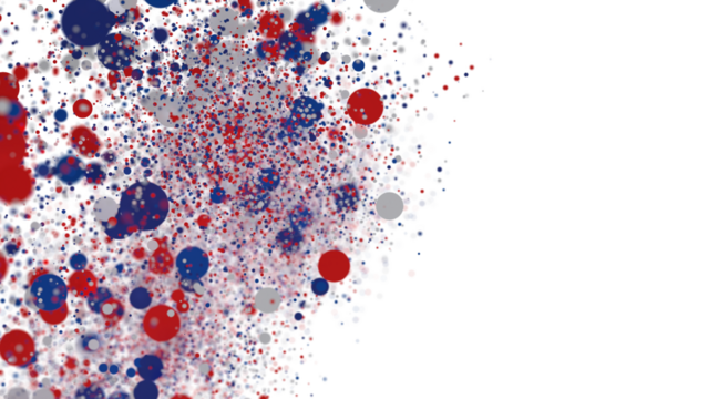 festive pattern with flying, falling red, blue, white stars in colors of the United States' flag