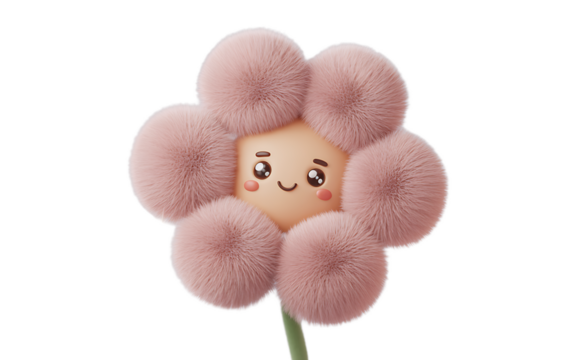 Cute fluffy pink flower character with happy smiling face brings joy and charm to any design project