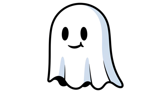 Whimsical ghost illustration in simple line art on transparent