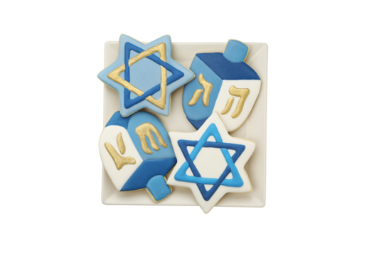 PNG, Cookies with Jewish symbols on plate, isolated on white background