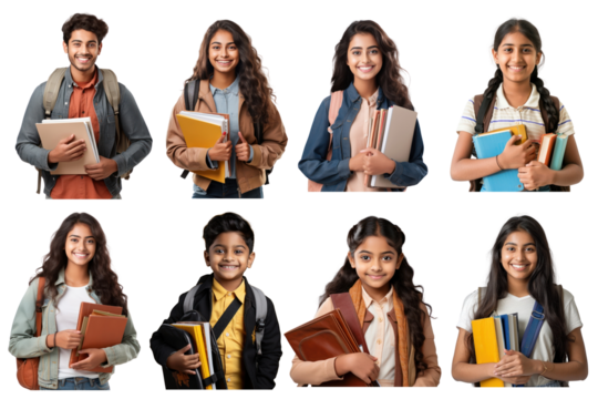 South Asian student portrait png element set, transparent background