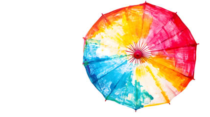 Vibrant rainbow umbrella bursts with summer joy, perfect for creative projects and joyful occasions isolated on white background