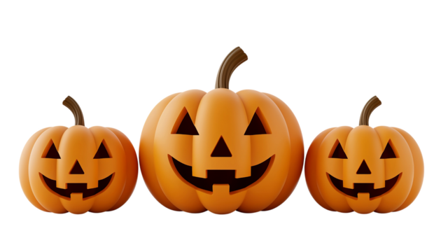 A classic carved halloween pumpkin with a friendly glowing face, isolated on a transparent background