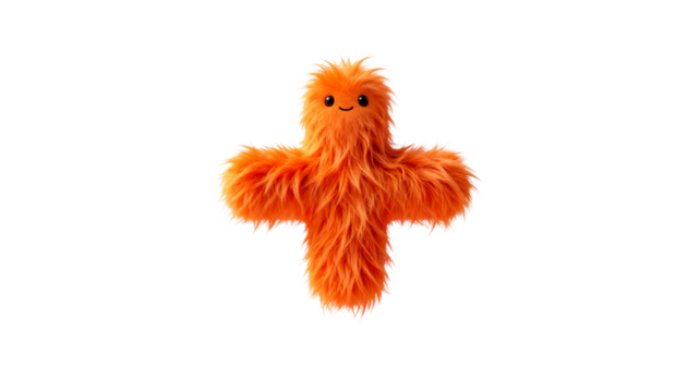 3D Render Wallpaper of a cute, fluffy orange monster shaped like a plus sign, with a happy face, perfect for educational or playful designs with ample copy space.