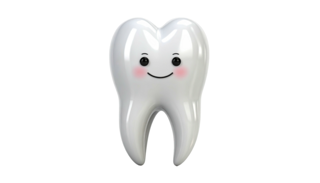 Happy tooth illustration on transparent background for hygiene concepts