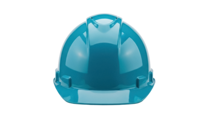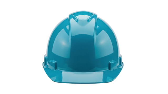 Blue construction hard hat PNG isolated on transparent background, safety helmet for industrial work and personal protection equipment