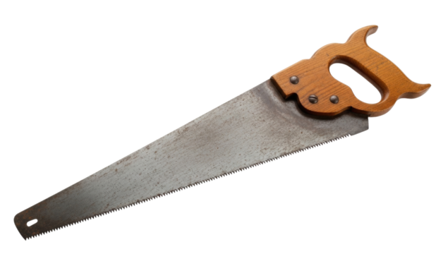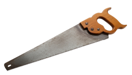 Hand saw with wooden handle transparent background cutout png