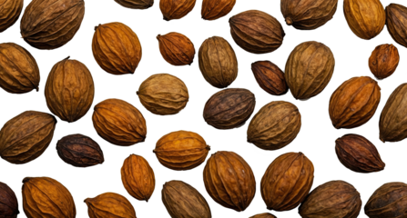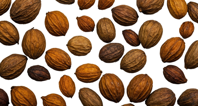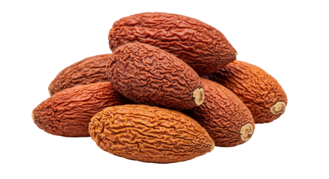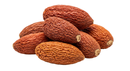 Heap of Terminalia chebula fruits presents a natural and earthy texture, ideal for wellness, ayurveda and traditional medicine related designs, transparent background