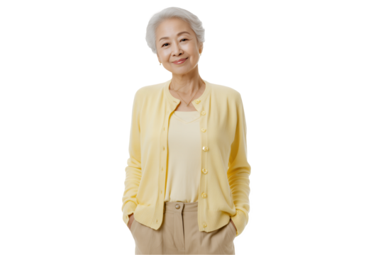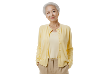 Smiling woman promoting smartphone technology on transparent background