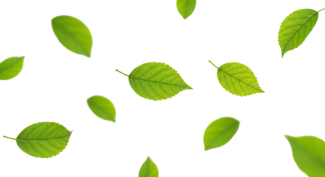 Floating fresh green leaves dance in harmony symbolizing renewal and the vibrant beauty of nature s elegance against a