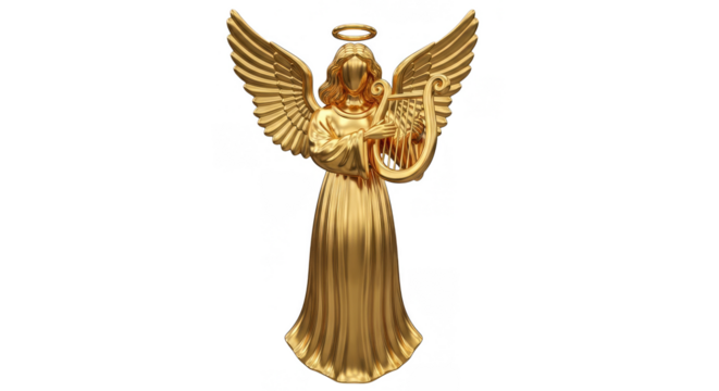 The harp features a curved neck, a wide soundboard, and numerous strings stretched between the neck and the soundboard. At the top of the harp’s pillar, there is a decorative element.