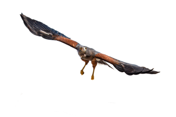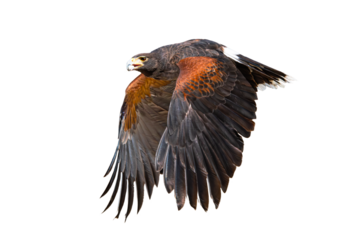 Harris's Hawk (Parabuteo unicinctus) Photo, in Flight on a Transparent Background