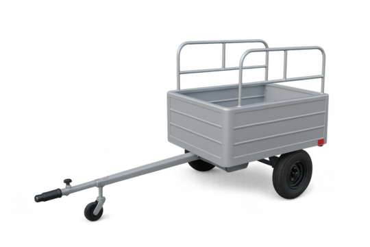 Isolated garden cart with four wheels and handle for hauling materials on a yard lawn