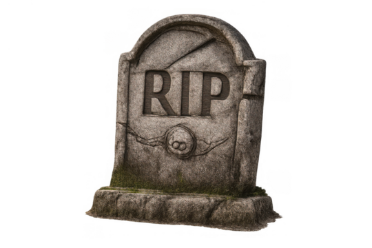 Halloween gravestone with rip inscription and skull design for spooky holiday decorations and horror designs