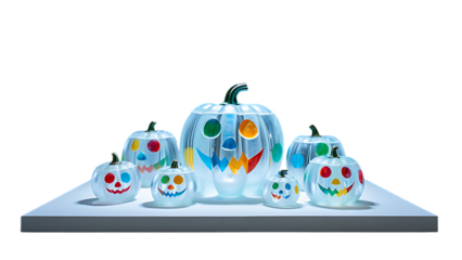 Frozen Polka: Ice Pumpkins as Surreal Art Objects png background
