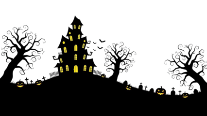 Halloween Haunted House Spooky Trees Silhouette Border