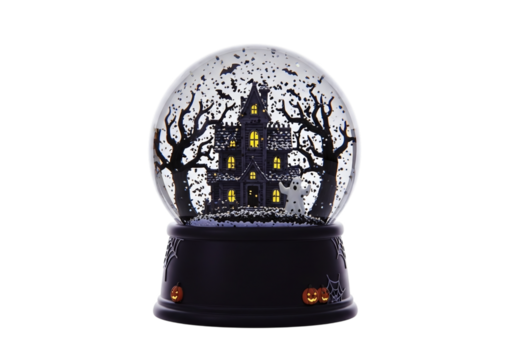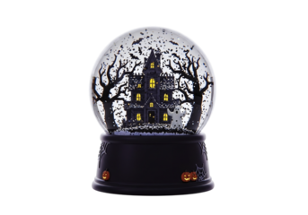 Halloween snow globe with haunted house isolated on transparent background