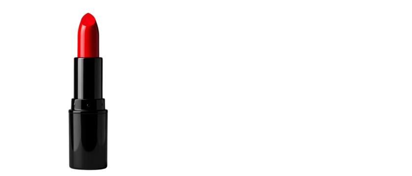 vibrant red lipstick in sleek black tube, perfect for adding bold touch to any makeup look. This cosmetic item symbolizes confidence and glamour, making it must have for beauty enthusiasts