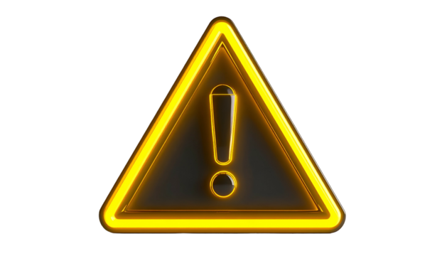 Illuminated green warning icon, a neon triangle, with an exclamation mark at its center
