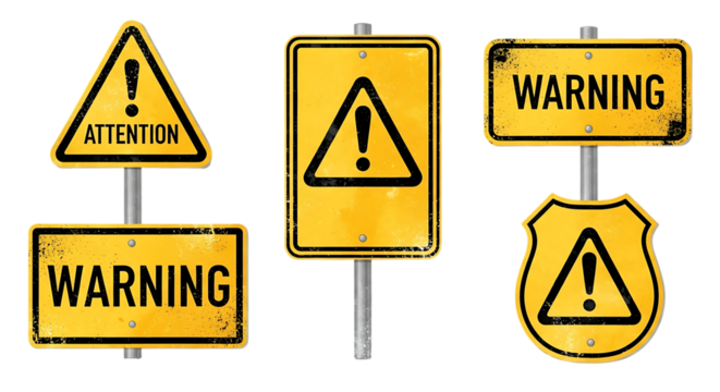 Yellow caution danger warning sign with transparent background