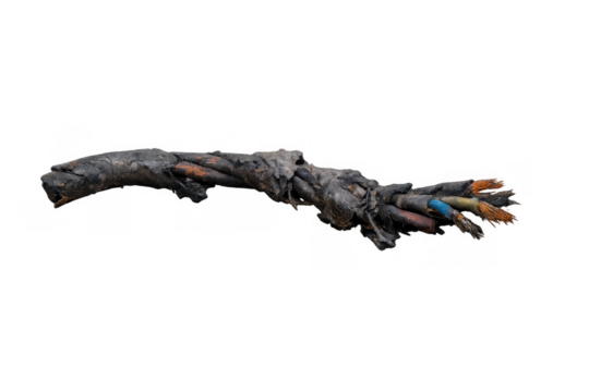 Burnt electrical cable showing fire damage and hazard