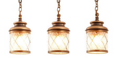 Collection of  three hanging lights with chain and patterned glass against black background real image, no blur, clear image, hd, full hd, photos, isolated white background