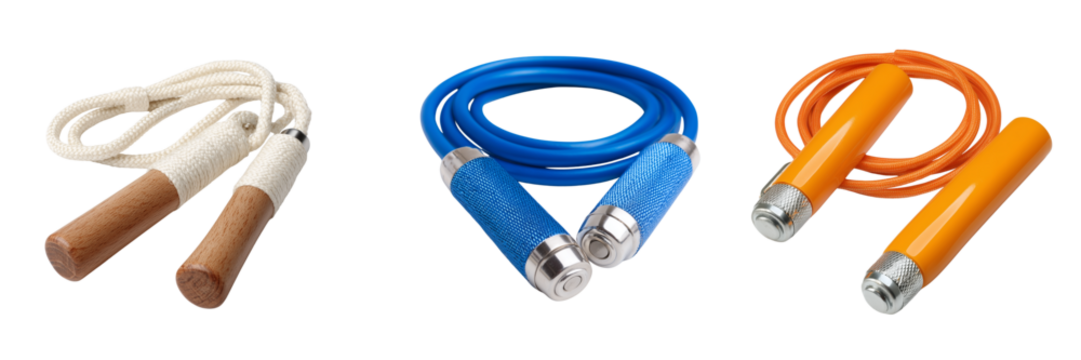 Set of Long adjustable jumping rope laid flat with ergonomic handles displayed clearly transparent png background. Ai generated