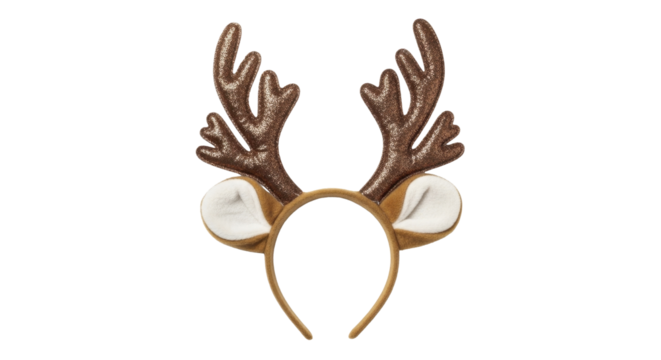 Reindeer Antler Headband with Glitter Ears on a transparent background PNG image PNG file