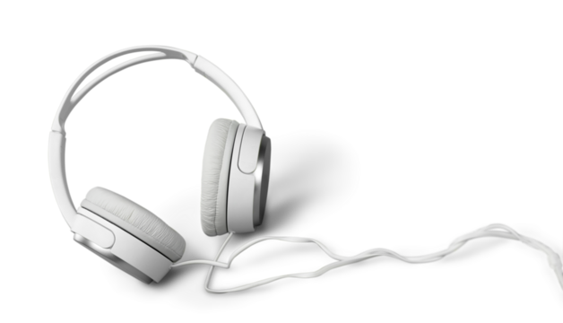 Black wired headphones isolated on white background. Modern gadgets for communication
